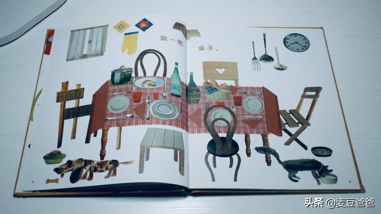 这本书采用的是层层递进的讲述方式,首先介绍一个小朋友日常都能接触到的东西,然后讲述这个东西需要什么原材料,这些原材料又是如何来的等等,嘴周落到了「做一张桌子,需要一朵花」的诗句上,非常有想象力。可以锻炼孩子了解事物背后的能力,最重要的是让孩子学会发散思维。