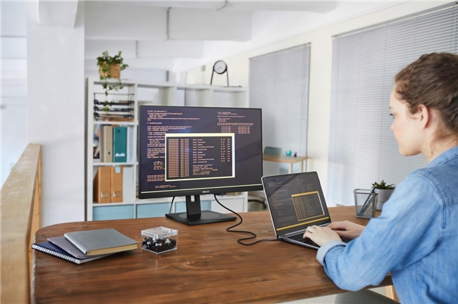 24B1U3600/27B1U3600拥有2K QHD高清分辨率,高达2560*1440细致像素,在整体色彩与细节上的呈现更加清晰锐利,可帮助用户快速捕捉数据图表、设计方案中的细节信息,有效提升信息读取效率。其中,27B1U3600具备99% NTSC广色域与99% sRGB广色域,能够实现自然的色彩过渡与丰富的画质层次,搭配HDR10技术还原光影层次,为专业创作与决策提供高精准视觉支撑。值得一提的是,27B1U3600显示对比度高达4000:1,黑白层次分明,细节呈现纤毫毕现!